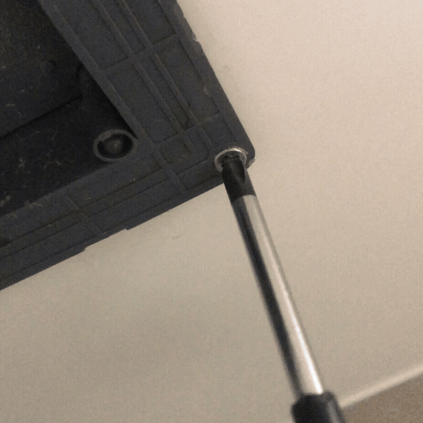 사진처럼 커버의 작은 틈을 공구나 손가락으로 살짝 재껴 열면, 안쪽에 흰색 스티커가 붙어 있습니다.