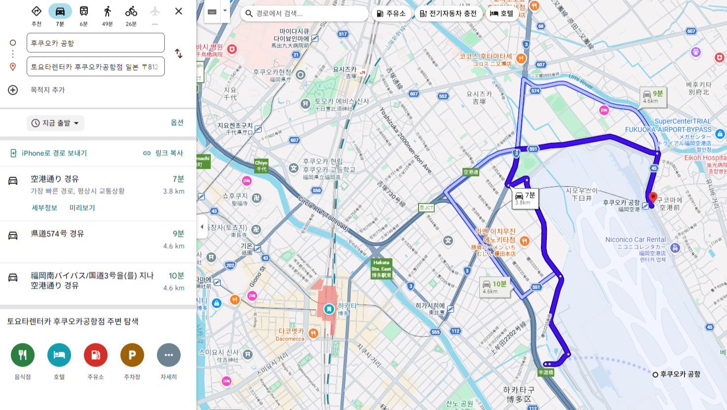 미리 예약해둔 도요타 렌터카 후쿠오카공항점. 지도상으로는 공항 바로 옆이라 금방 갈 줄 알았습니다.